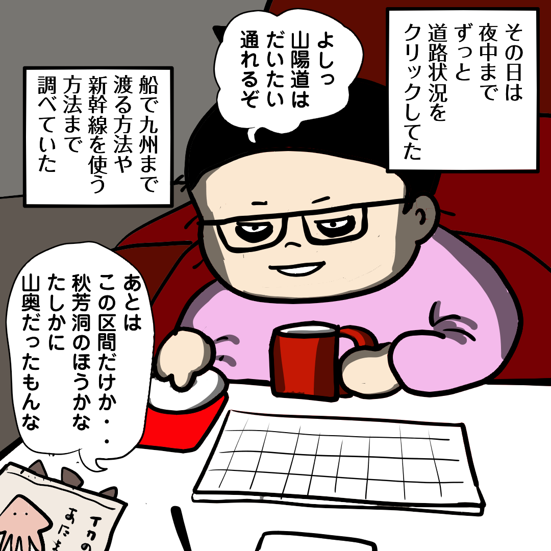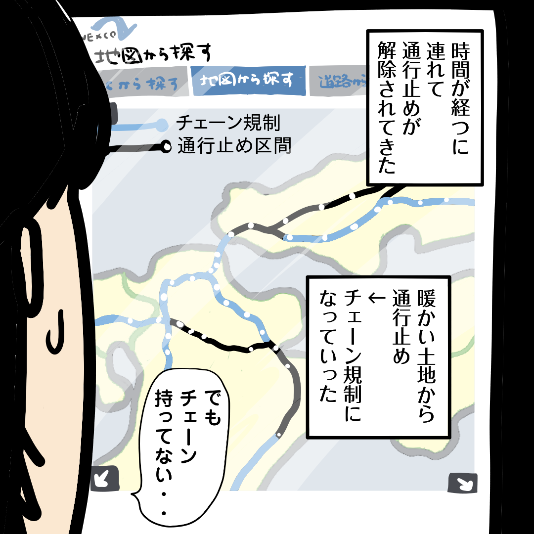 山陽自動車道の広島と山口の県境あたりでノーマルタイヤが凍結で進めなくなり