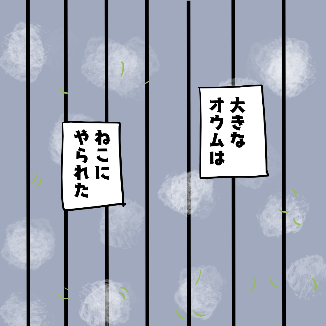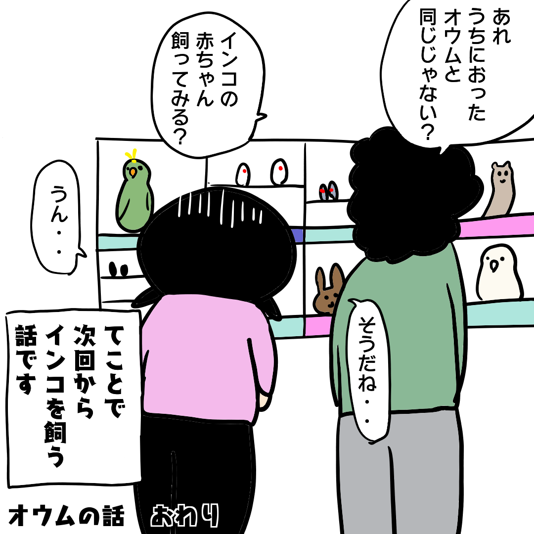 ごめんねおうむ。〜どうぶつをかう41話 2026/02/28 20:00 80年代ちまき幼少期動物を飼う話。↓ ぜひ1話から読んでね(╹◡╹) まだ5歳ぐらいだったと思う。アパートの外に置いてた2層式の洗濯機に猫がひらりと登って天井の骨組みに吊るしてあったオウムの鳥籠を狙った。そこまでの記憶が鮮明にある。お母ちゃんを呼びに行って戻ったらたくさん毛が散っていた。5歳でもきっと、猫を追っ払うことができただろう。なぜそれをしなかったのだろう。ホンモノのバカだ。 「昭和ちまき!どうぶつをかう〜父とのたたかい」カテゴリの最新記事 タグ :#エッセイ漫画#コミックエッセイ#日常漫画#絵日記#漫画ブログ#80年代#オウム#昭和#ペット#インコ < 前の記事次の記事 > コメント コメントフォーム 名前 コメント 記事の評価 リセット リセット 顔 星 情報を記憶 コメントを投稿する