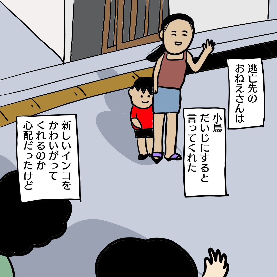 40年前の後悔…インコを逃す!!(62)〜動物を飼う インコ編 2026/03/29 20:00 小学5年生の頃、逃してしまったインコは町内の外人さんの家にお世話になってました。いきなりこんなになついてるインコがやってきたらそりゃかわいいだろうな。自分でも手放さない。もっと大騒ぎしたかもしれない。この男の子もこの後泣いちゃったんだろうな。無事でいてくれたことと見つかったのは奇跡です。今でも他人のインスタ見てたら逃げちゃったり猫にやられたりしないかとハラハラします。次回は、動物を飼うシリーズの最終回です。読んでくださりありがとうございます(╹◡╹) 「昭和ちまき!どうぶつをかう〜父とのたたかい」カテゴリの最新記事 タグ :#漫画ブログ#エッセイ漫画#コミックエッセイ#絵日記#ソロ活#インコ#探しています#50代#昭和#80年代 < 前の記事次の記事 > コメント コメントフォーム 名前 コメント 記事の評価 リセット リセット 顔 星 情報を記憶 コメントを投稿する